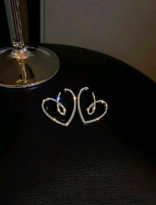 Aretes Plateados Corazon con Cristales - Super Elegantes