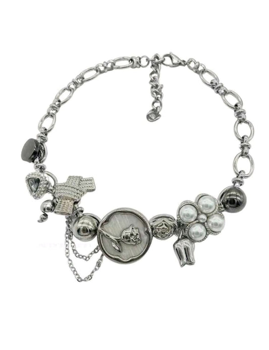 Collar Plateado con Charms - Gargantilla Choker