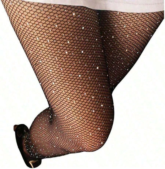 Medias en Red con Brillitos - Color Negro - Unitalla XL-2XL
