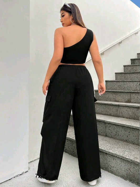 Coordinado Playero Negro 2 Pzas Top y Falda - Stretch - Talla XL