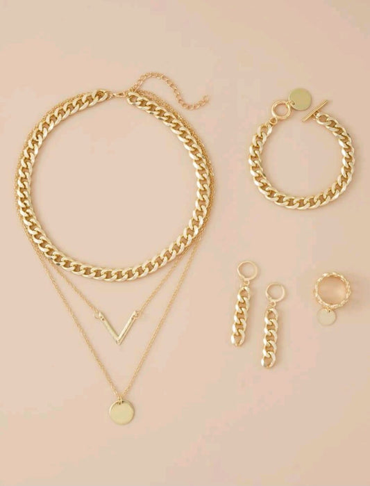 Set Collar-Aretes-Anillo-Pulsera - Dorado