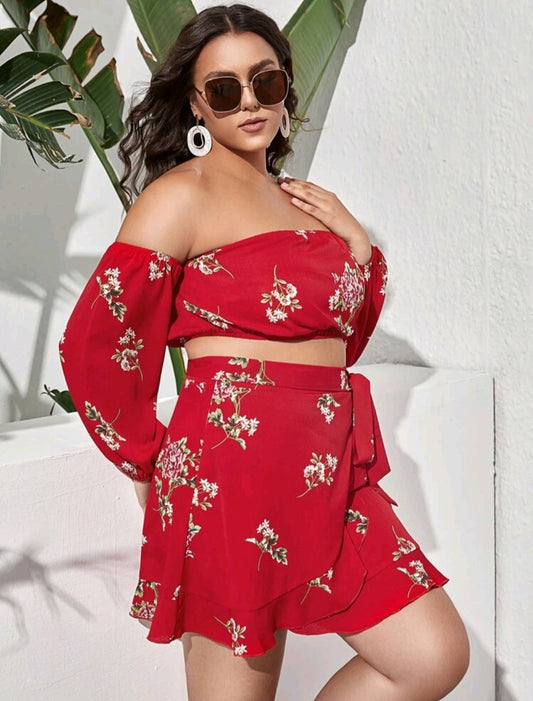 Coordinado Floral Rojo -Stretch - Talla 2XL