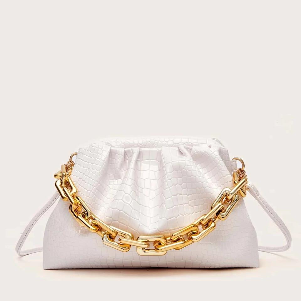 Bolso Fruncido de Cocodrilo con Cadena - Convertible a Crossbody