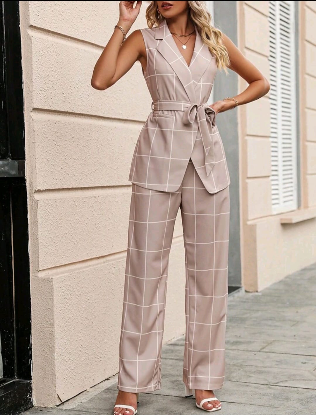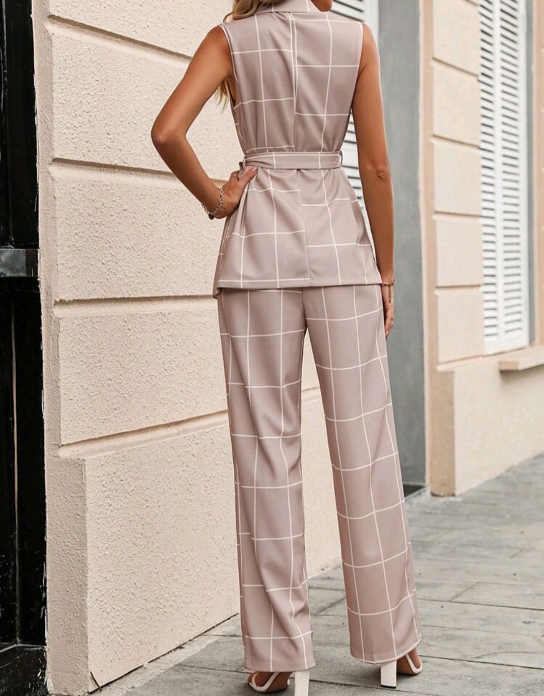 Coordinado Beige Cuadricula Beige/Blanco - Poco Stretch - Talla XL
