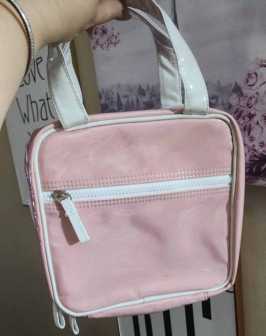 Amplio neceser para cosméticos en color rosa. Elaborado con protección tipo Nylon fuerte para repeler la humedad y proteger contra la lluvia.