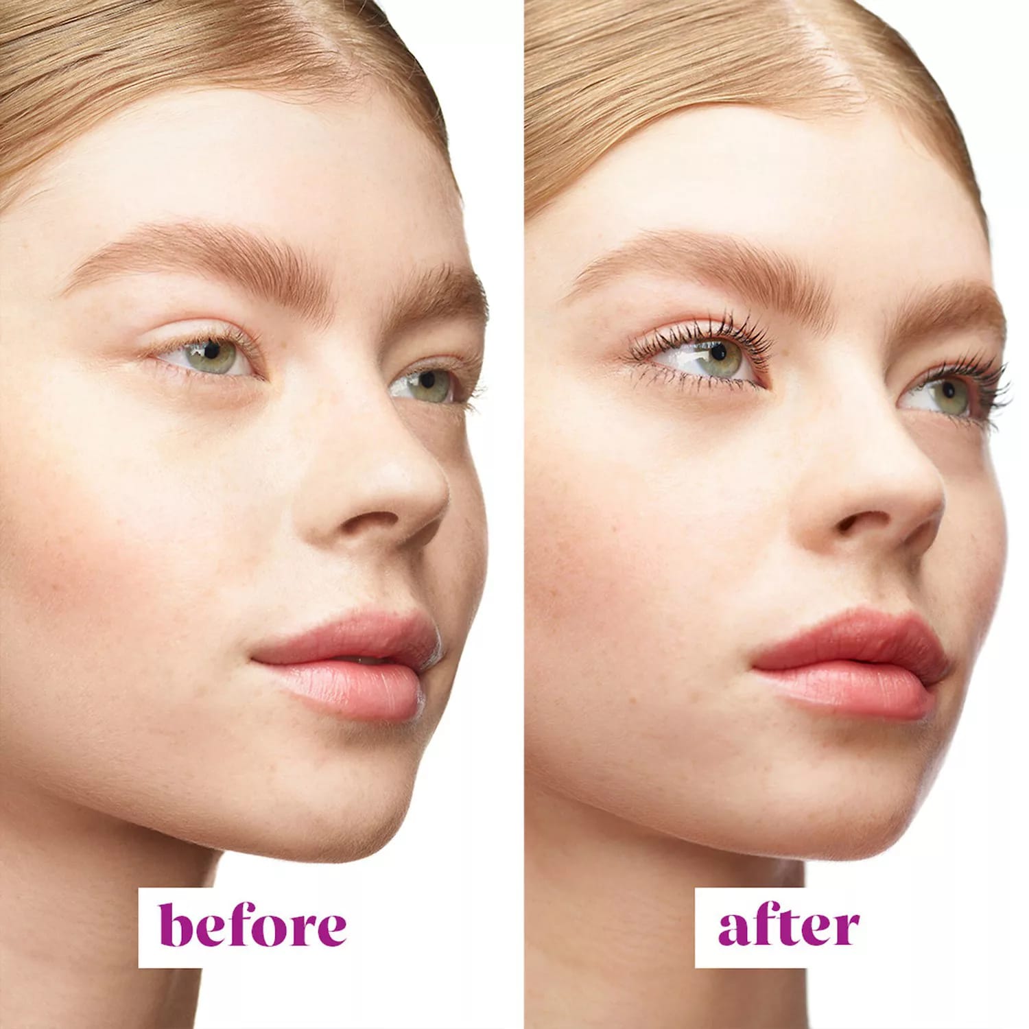 Qué es: Una máscara de pestañas negro azabache con una exclusiva paleta plana de dos caras que alarga, define y da volumen a las pestañas al máximo.